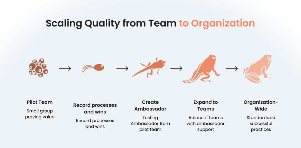 Moving from individual team success to organization-wide excellence requires deliberate planning and patience. Cultural change happens through demonstration, not declaration.